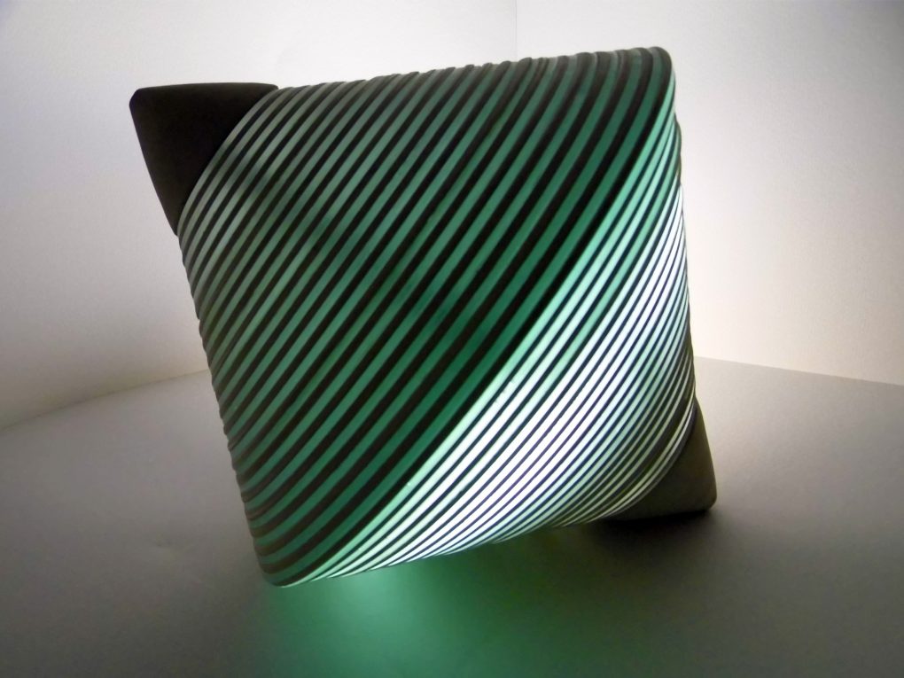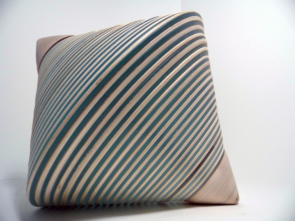 Multilayer sculpture of wood and glass, inspired of textiles spindle.