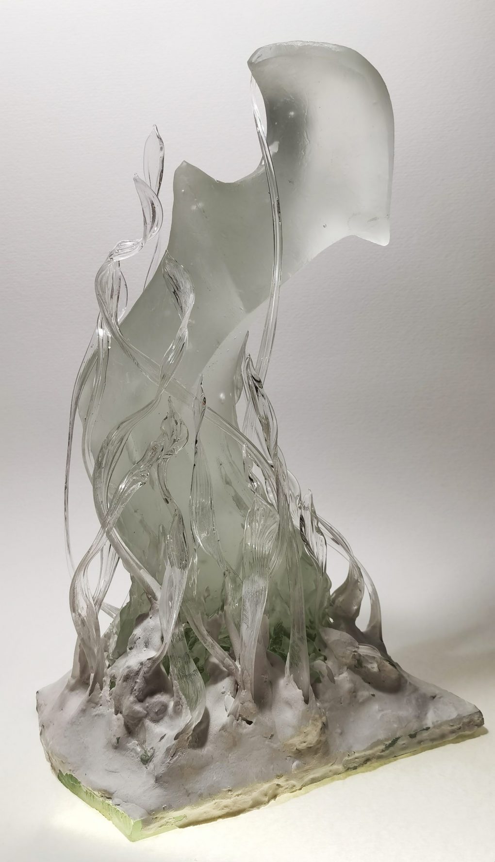 Forcola opera è un simbolo di Venezia e l’obbiettivo è dimostrare questo smibolo come un tesoro affondato nel canale che è circondata dagli alghi. una Forcola e gli alghi tutti in vetro di Murano trascorsando il tempo sono trasformati tutti in un effetto di sale.